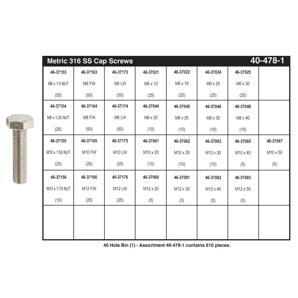 316 Stainless Steel Hex Head Cap Screw Bin Assortment (M6 - M12)