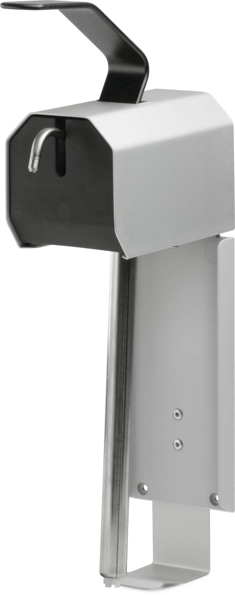 Heavy duty metal dispenser for pour handle gallon hand cleaner containers.