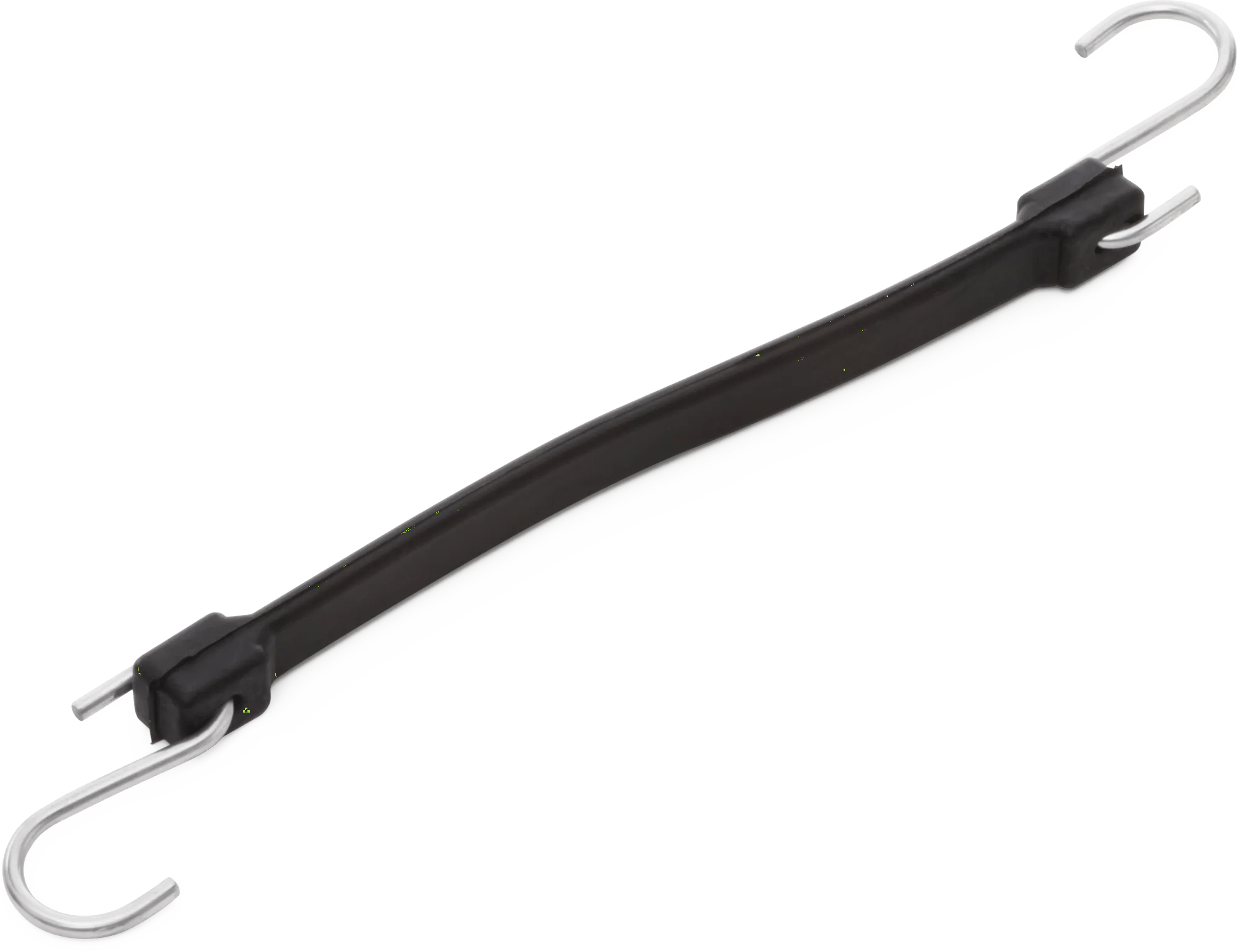 - Molded black rubber tie down straps with zinc-plated "S" hooks attached.