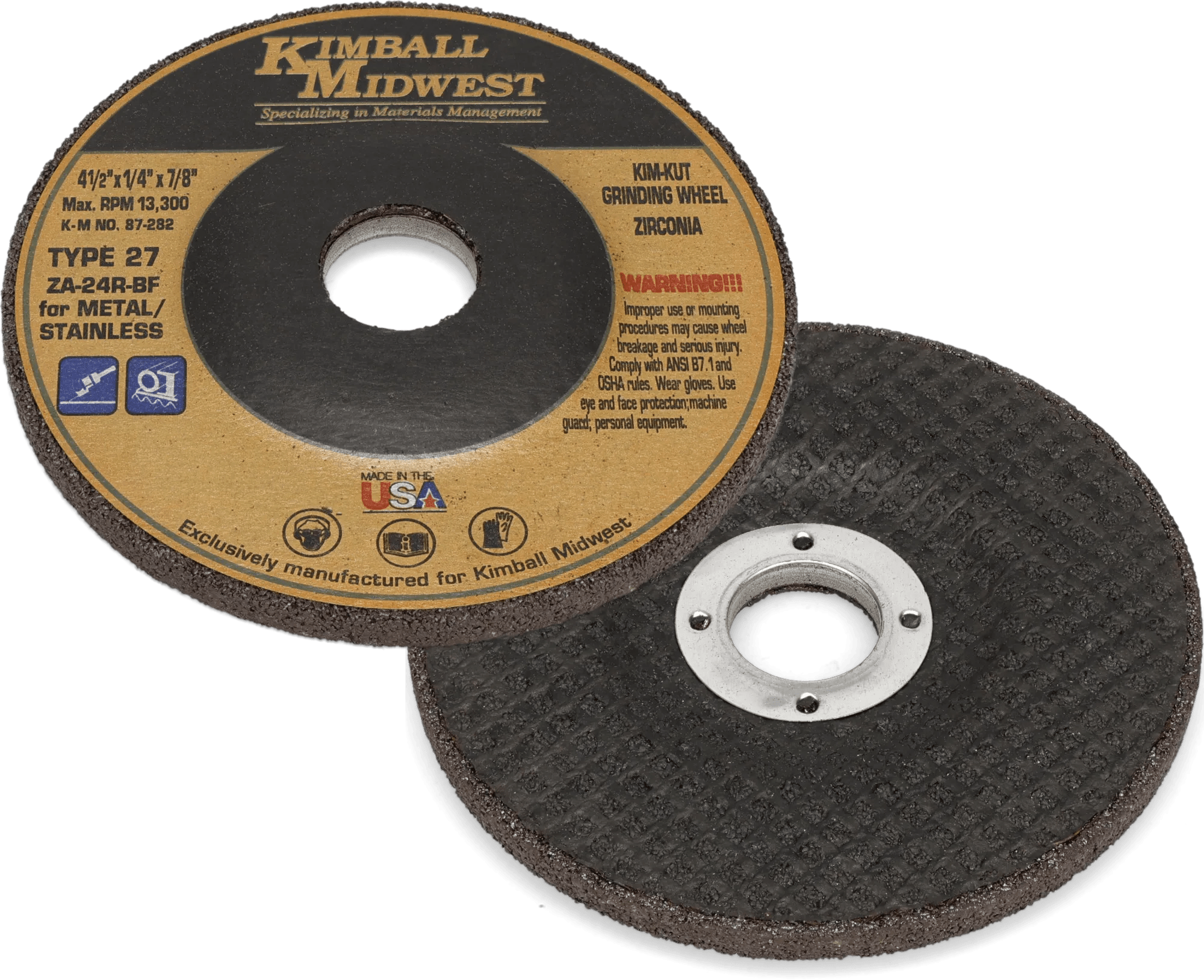 4-1/2" x 1/4" x 7/8" Type 27 Kim-Kut™ Zirconia Grinding Wheel - 10 Pack