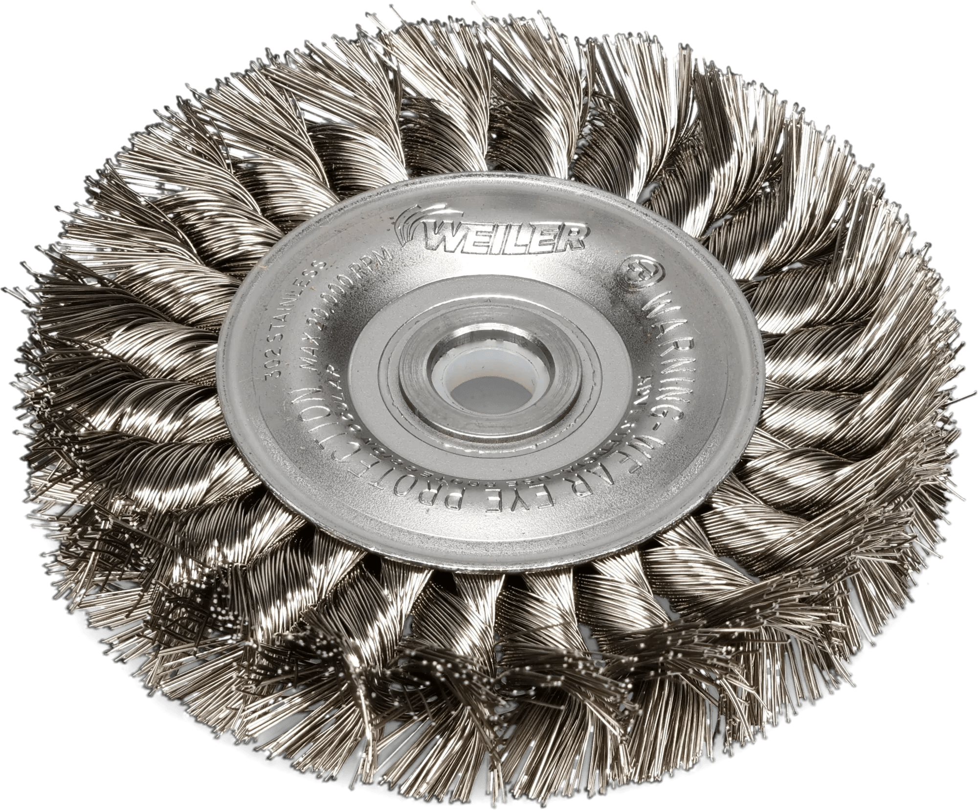 4" x 1/2" x 0.014" Twisted Knot Stainless Steel Wire Brush Wheel w/ 1/2" - 3/8" Arbor Hole Adapter