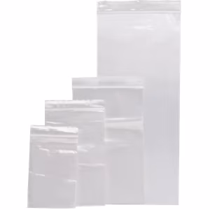 RESEALABLE STORAGE BAGS made of crystal clear polyethylene, designed for repeated use. Convenient for organizing fasteners, washers, electrical terminals, connectors, and more. Vented options available for easier packing and shipment by allowing excess air to escape.
